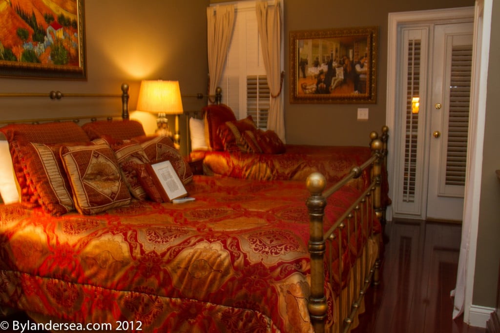 My room would seduce any couple with its multi-pillow adorned queen bed, antique furnishings and a Jacuzzi tub. Sleeping in luxury was more than heavenly, I felt like I was starring in the Princess and the Pea fable. Owner Michael Miles explained: “We only want the best for our guests. (So) We have insured a superbly beautiful and comfortable night’s sleep with our Select Comfort Sleep Number Pillow Top Bed. They are topped with an Isotonic pillow-top mattress cover. The next layer is a feather bed cover (hypoallergenic)…then nearly at the top are 400-count cotton sateen sheets & pillow cases (silky and smooth). The pinnacle is designer duvet covers and isotonic pillows.”