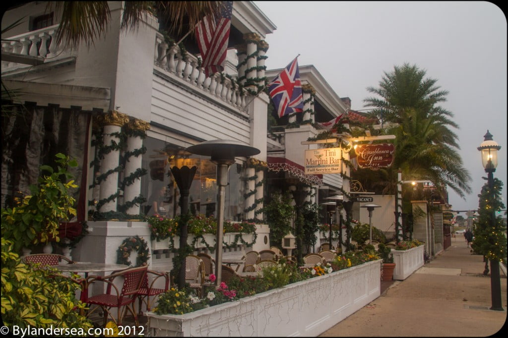 Since St. Augustine is a walking town, once you park your car (the Inn has a lot for guests) you won’t need it again. The Casablanca rests on the main thoroughfare and within a stones throw of many foodie-worthy restaurants. Consider jovial Meehan’s Irish Pub –practically next-door, tapas at the Tasting Room around the corner, or authentic French fare at Bistro de Leon a block away. If you desperately need early morning coffee- try Crucial Coffee on Charlotte Street and later wander into the adjoining courtyard restaurant, The Gourmet Hut, for lunch.