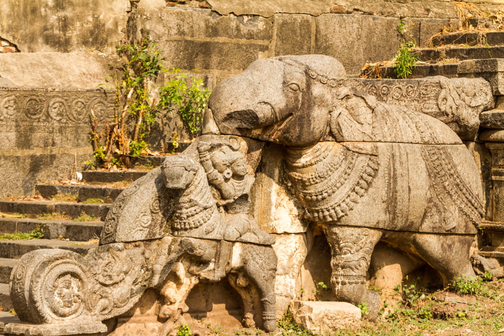 The temple was severely vandalized during invasions of South India between 1311 and 1325. A garrison was set up within the temple and the walls were fortified during the Carnatic Wars and during the Anglo-French war between Hyder Ali and the British in 1740. I think the ruins give it a mysterious aura and I rather liked the crumbling effect. The large water tank formerly used for rituals is closed off.