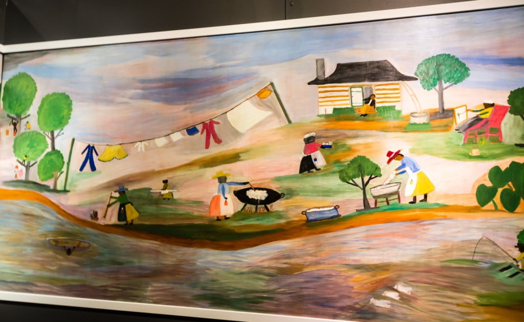 I found the museum’s new (but year long) exhibition impressive: The Murals of Clementine Hunter. “Clementine Hunter is a great example of the creative genius who arises from the most unlikely circumstances,” said Lt. Governor Jay Dardenne at the exhibits opening on March 28, 2015. “After the age of 50, with little more than her own vision and fierce determination, she picked up a brush and painted her way to wide acclaim.”