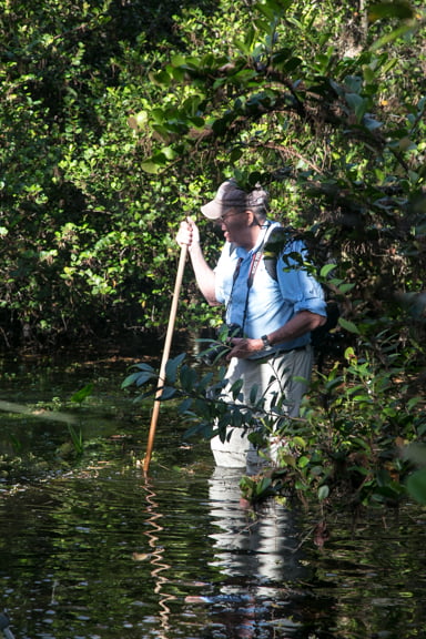 Carol and I dressed as directed in quick-dry hiking pants and a pair of old sneakers. “No waders needed,” said our guide. “Don’t worry, we don’t have pythons here. There may be a few small gators in one area, but nothing to be anxious about, ” he continued. Guess we believed him because we were ready to wade in.