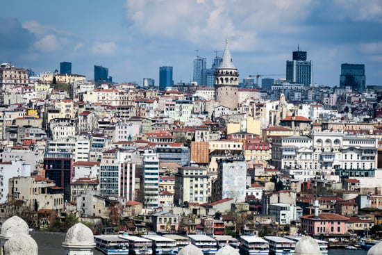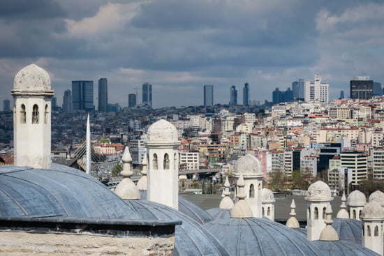 While standing on the grounds of the Suleymaniye Mosque, one of the highest points in the city, you are offered fabulous panoramic views. I saw the sprawling city below divided by the Golden Horn (the harbor) and the Galata Bridge. The rooftops with ancient domes juxtapose the modern buildings across the water.