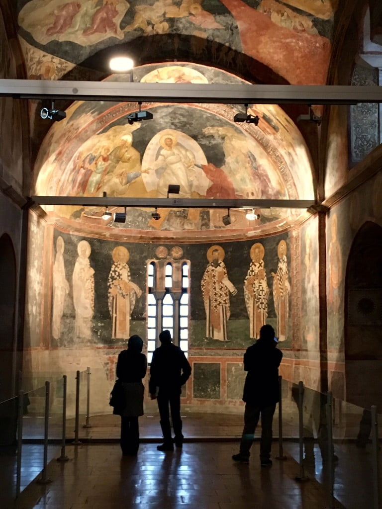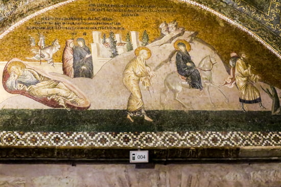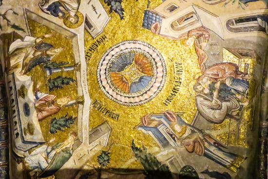 Scaffolding covers the exterior of the Chora Church, and the interior nave is closed, but the mosaics and frescoes whisper stories to those who visit. We took a taxi to reach the out of the way location, but the trip was worth the effort.