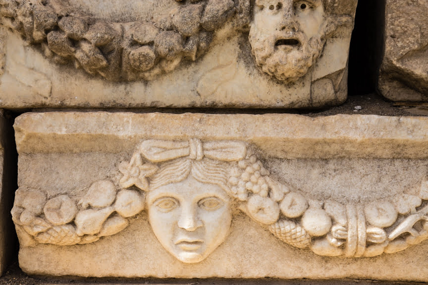 Our guide Burcu peeked my interest when she us told the story during our drive. Once onsite, she led us a more extensive tour than the typical groups receive. We were fascinated by the sculpture workshop area. Excavations here in the 1960s uncovered 25 half-finished statues and practice pieces carved by apprentices. We delighted in the sculptured “people scrolls” displayed on a wall, and it was fun to compare the faces and various styles of carving.
