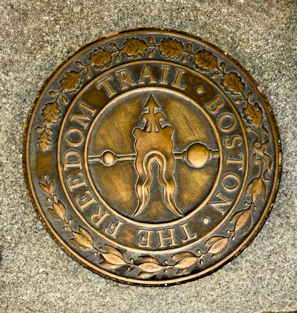 Sidewalk Marker along the Freedom Trail in Boston, MA. ©Bylandersea