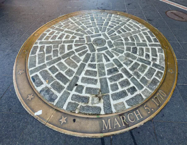 This marker denotes the site of the Boston Massacre, March 5, 1770. ©Bylandersea
