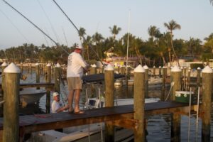 I returned to my room to dress and discovered Jay slowly coming to life. He doesn’t do mornings very well, at least not before his coffee. I left him in his post-dawn stupor and went back outside. Some fisherman had arrived on the scene. I watched as they loaded their boat with about twenty fishing lines and then took off. However, they shared a secret– coffee and Danish were being served by the pool. This was indeed good news, especially to Jay.