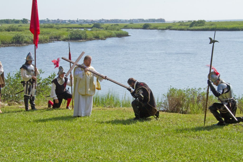 Tuesday, Sept. 8 is the actual day that St. Augustine marks the 450th anniversary of its founding by Don Pedro Menendez. The day’s events start with a reenactment of the landing of Menendez and the hundreds of settlers who accompanied him and founded the City of St. Augustine. The reenactment will be staged on the grounds of the Mission Nombre de Dios near the exact location of that original landing. The colorful event truly makes history come alive. Following the reenactment, a procession will travel down San Marco Avenue to the Cathedral Basilica of St. Augustine for a commemorative Mass scheduled for 11 a.m.